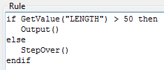 > | Right side is smaller | This rule outputs values with a LENGTH greater than 50, anything equal to or less than 50 is skipped.