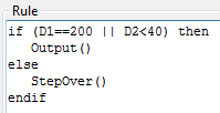 || | Logical OR, only one condition must be true | If D1 is 200 or D2 is smaller than 40, the row is output, otherwise it is skipped.