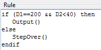 && | Logical AND, both conditions must be true | If D1 is 200 and D2 smaller than 40, the row is output, otherwise it is skipped.