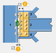 Bolt spacing. Use a space to separate bolt spacing values. Enter a value for each space between bolts. For example, if there are 3 bolts, enter 2 values. |