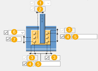Bolt spacing. Use a space to separate bolt spacing values. Enter a value for each space between bolts. For example, if there are 3 bolts, enter 2 values. |