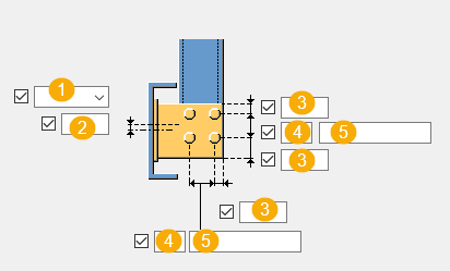 Bolt spacing. Use a space to separate bolt spacing values. Enter a value for each space between bolts. For example, if there are 3 bolts, enter 2 values. |