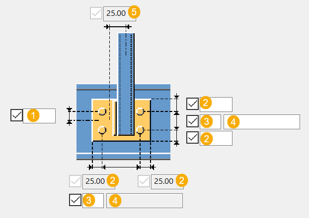 By default, the thickness is 12 mm and the height is determined by the bolt distances defined on the Bolts tab. |
