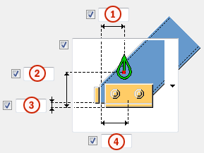 Plate position. Define the horizontal distance from the picked point to the inner face of the vertical plate. |