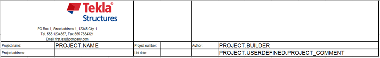 - Add the project properties to the Excel template that you are going to use in the export and save the template.