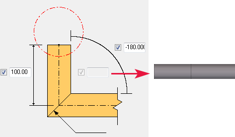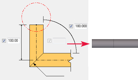 Bent angle by entering a value between +90 and +180 degrees or -90 and -180 degrees. |