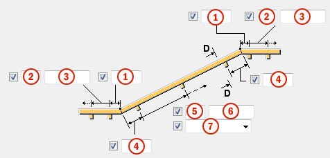 Horizontal distance from the rail’s rightmost/leftmost edge to the start/end point. If you have created endings, the distance is measured from the endings’ outmost edge. |