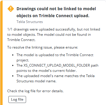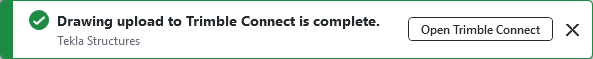 When the uploading is done, Tekla Structures displays a notification stating if the upload was successful or whether there were warnings or errors.