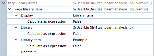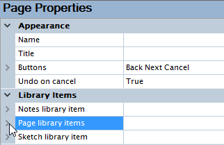 - Click the arrow on the left side of Page library items property to view page item properties.