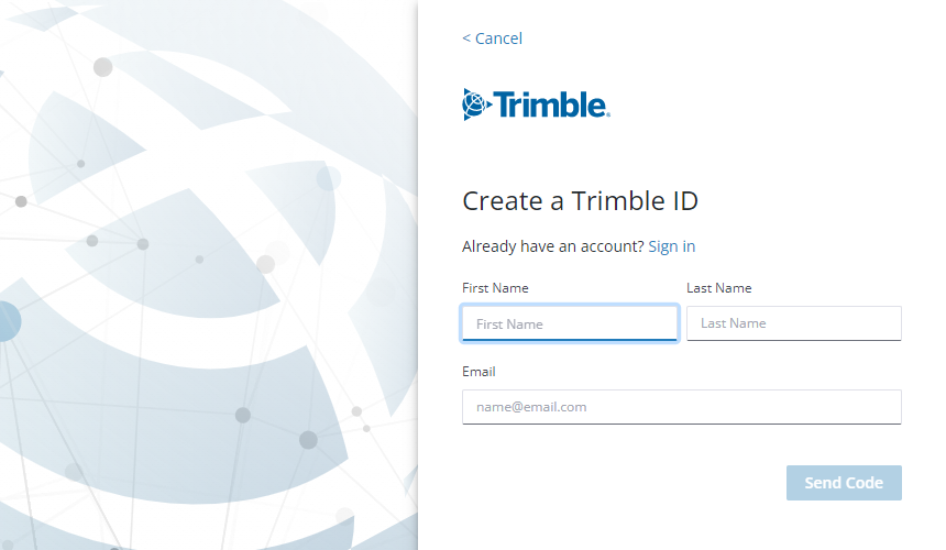 - If you have received an email invitation from Trimble to create a Trimble Identity, follow the instructions in the email to create your account to ensure you have the correct access rights. Otherwise, Click here to create a new Trimble Identity.