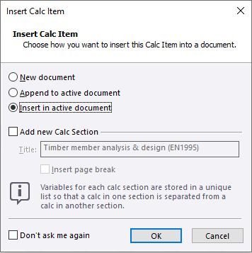 As stated, one of the reasons for running library calculations in Tedds for Word is so that you can combine a number of calculations in a single document. In this case, each calculation should be placed in a separate Calculation Section, so we will start off by introducing one of these. Calculation Sections will be explained in more detail later in this exercise.