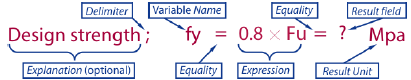 Writing calculations in Tedds for Word is easy. Tedds follows standard mathematical rules and uses standard mathematical operators. For example 1 + 2 would add 1 to 2. To write an equation use the = sign, and to specify where you want to see the answer use the ? symbol. For example: