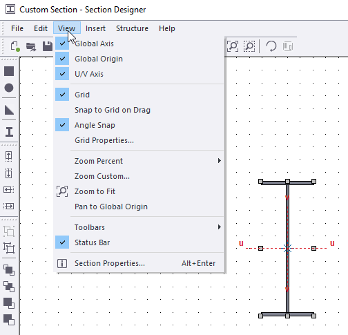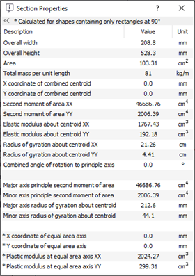 Once you have created your section in the Section Designer, you can view its properties at any point. You can later insert the section properties in your calculations. To view section properties, see the following instructions.