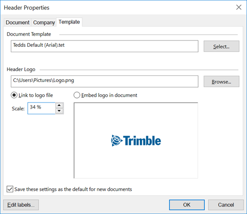- Under Documents, click Select and in the Company folder, select the new default template.