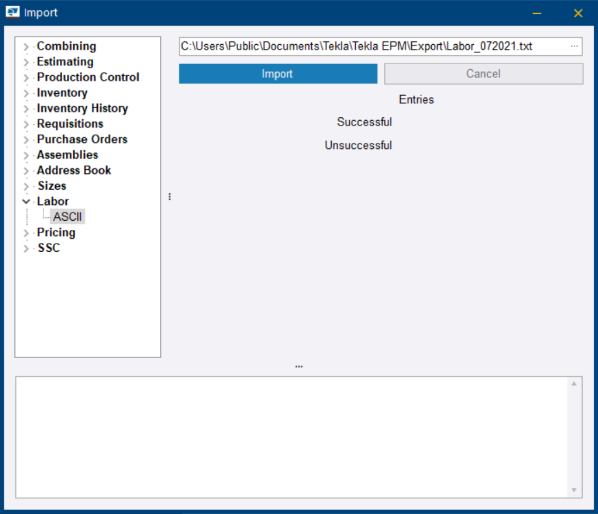 Para importar información de mano de obra de un archivo de texto a Tekla PowerFab, hacer lo siguiente: