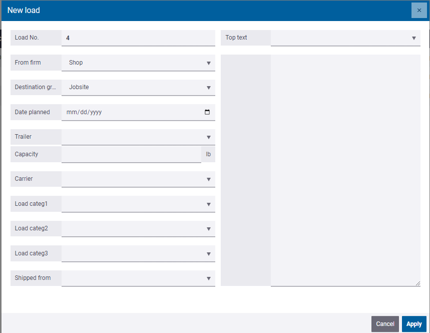 Es posible crear una nueva carga directamente en el calendario de embarques en Tekla PowerFab Go.