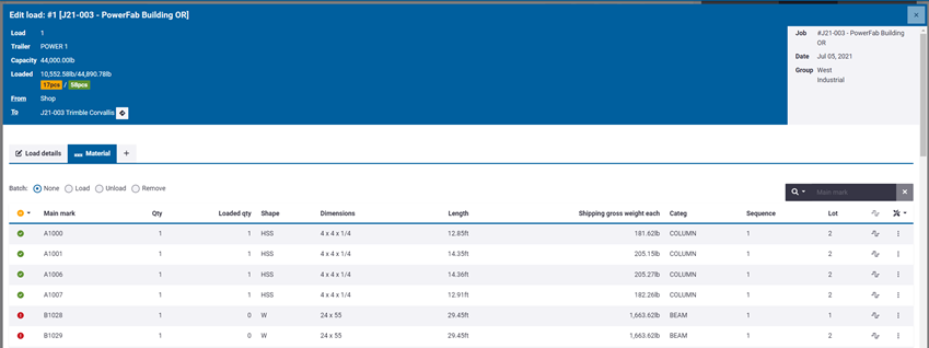 Crear y administrar cargas en Tekla PowerFab Go