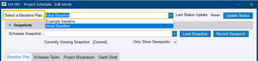 Una vez que se haya finalizado el cronograma preliminar del proyecto, es una buena práctica establecer la línea de base inicial, de modo que el progreso real se pueda comparar con el plan de base original.