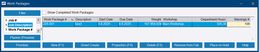 El número de advertencias de planificación también se muestra en la columna Advertencias # del diálogo Paquetes de trabajo.