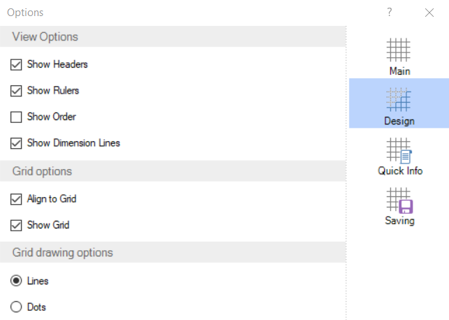 Hay dos pestañas con ajustes relacionados con la edición y el diseño de los reportes.