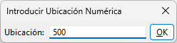 Cuando empiece a escribir, Tekla Structures muestra el cuadro de diálogo Introducir Ubicación Numérica. Haga clic en OK para confirmar la dimensión.
