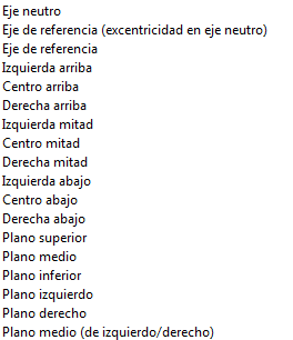 Define la ubicación de la parte de análisis en relación con la parte física correspondiente. La ubicación del eje de análisis de una parte define dónde se encuentra la parte con otras partes y dónde Tekla Structures crea nodos en los modelos de análisis. Las opciones son las siguientes: