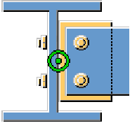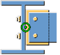 Carril unido a una columna con un ángulo. Para garantizar que los tornillos se puedan apretar, la unión puede crear un corte de 45 grados en el carril o agujeros grandes en el ala opuesta para que pase la llave. |