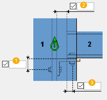 Utilice la pestaña Parámetros para definir el corte de la parte secundaria, el accesorio, las dimensiones, el desplazamiento y la creación del agujero.