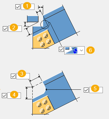 Ovalado crea agujeros ovalados. Sobredimensionado crea agujeros sobredimensionados. Sin agujero no crea agujeros. Roscado crea agujeros roscados. |