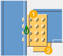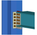 Placa plegada (151) conecta una viga a una columna o una viga utilizando una o dos placas plegadas, atornilladas o soldadas. El extremo de la viga puede cortarse en ángulo recto o en bisel para acomodar una viga secundaria inclinada. Por defecto, se crean entalladuras en las alas de la viga secundaria cuando es necesario. Se puede definir en qué lado del alma de la viga secundaria se coloca la placa plegada en las uniones de placa simple. También se pueden crear uniones de placa doble. Las placas de cantonera se crean soldadas a las alas de las vigas secundarias cuando es necesario.