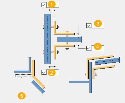Hueco entre el ala inferior de la parte secundaria y la parte principal. Tekla Structures añade el valor introducido aquí al hueco introducido en la pestaña Dibujo. |