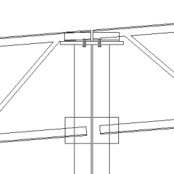 Vigueta 2 lados a columna (162) crea una unión atornillada entre una columna y dos viguetas. Puede definir el ángulo de montaje y la ubicación de los tornillos. Se pueden crear rigidizadores debajo de la placa capitel.