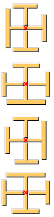 Ajuste la ubicación de las partes horizontales con respecto a las partes verticales. El valor de excentricidad es cero por defecto. Los perfiles T están conectados al centro del alma del perfil I. |