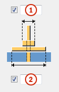 Seleccione una de las siguientes opciones para definir si la tuerca y la placa de arandela están rebajadas en la viga: