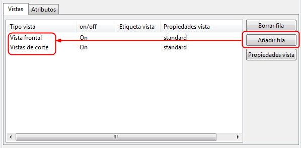 En este ejemplo, se quieren añadir dos vistas, una vista frontal y una vista de corte.