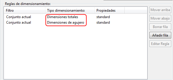 Seleccione Dimensiones totales como la primera regla y Dimensiones de agujero como la segunda.
