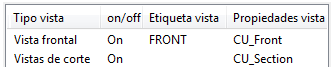En este ejemplo, las propiedades de vista frontal se guardan con el nombre CU_Front.
