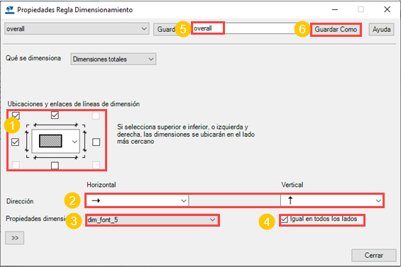 Defina las propiedades de regla de dimensionamiento a usar en las vistas de dibujo que acaba de crear.