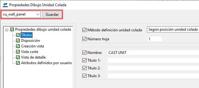 Puede usar el archivo de propiedades de dibujo cu_wall_panel posteriormente cuando necesite dibujos con configuraciones similares.