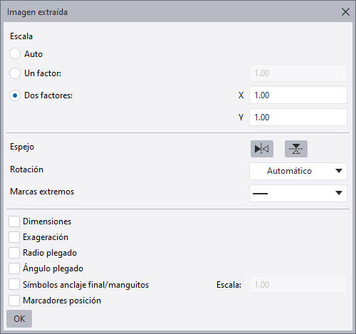 | Marcas extremos | Seleccione la forma deseada para los extremos de barra en las imágenes extraídas.