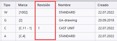Para mostrar la marca de revisión en lugar del número de revisión en la Gestión documentos, defina la opción avanzada XS_SHOW_REVISION_MARK_ON_DRAWING_LIST como TRUE.