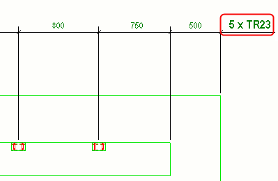 Puede exagerar las dimensiones estrechas para facilitar su lectura. Cuando se exagera, una dimensión que es inferior al límite definido en el cuadro de diálogo Opciones se aumenta con la escala definida. Si hay varias dimensiones exageradas, Tekla Structures las organiza automáticamente.