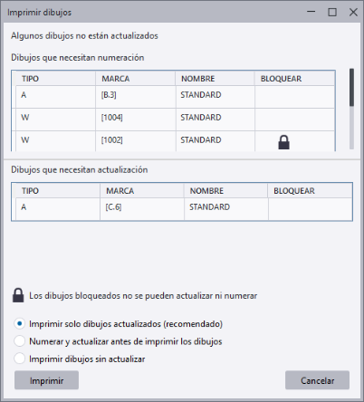 Añade la marca de la última revisión del dibujo impreso al nombre de archivo de impresión. Por defecto se utiliza el número de revisión. Si, por el contrario, siempre desea utilizar la marca de revisión, defina la opción avanzada XS_SHOW_REVISION_MARK_ON_DRAWING_LIST en TRUE. Verifique las siguientes opciones avanzadas e incluya REVISION_MARK en el valor si todavía no se muestra la marca de revisión: XS_DRAWING_PLOT_FILE_NAME_A, XS_DRAWING_PLOT_FILE_NAME_W, XS_DRAWING_PLOT_FILE_NAME_G, XS_DRAWING_PLOT_FILE_NAME_M o XS_DRAWING_PLOT_FILE_NAME_C, según el tipo de dibujo. Esta opción solo está disponible si ha seleccionado Archivo PDF o Archivo de ploteo. Consulte también el artículo de soporte Including drawing revision mark to print file name (Incluir la marca de revisión de dibujo en el nombre de archivo de impresión). |