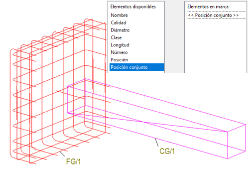 El elemento Posición conjunto está disponible en marca de armadura, y en las propiedades de nota asociativa. Obtiene el número de posición del conjunto de armaduras asociado.