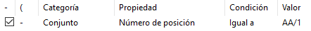 En el siguiente filtro de ejemplo se muestran los conjuntos de nivel jerárquico 3 cuyo número de posición es AA/1: