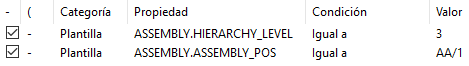 ASSEMBLY.HIERARCHY_LEVELcomo Propiedad, seleccione Igual y defina el nivel de conjunto deseado como el valor. -