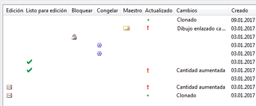 Información textual sobre los cambios en el dibujo. Por ejemplo, si se ha clonado el dibujo, indica Clonado en esta columna. |