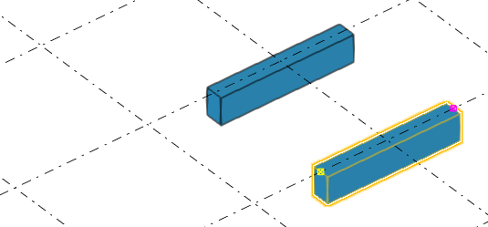 En un modelo, puede mover objetos desde un objeto a otros objetos similares. Esto resulta útil, por ejemplo, al detallar partes modeladas anteriormente. Los objetos entre los que realiza las operaciones de desplazamiento pueden tener dimensiones, longitud y rotación distintas.