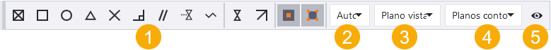 - Plano: Puede elegir posiciones tanto en el plano de vista como en el plano de trabajo, según lo que haya seleccionado en la segunda lista de la barra de herramientas Elección.