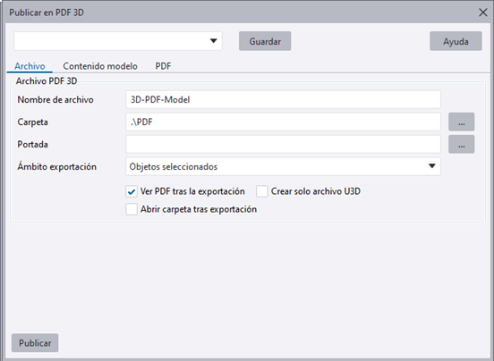 Exportar un modelo u objetos de modelo seleccionados como PDF 3D